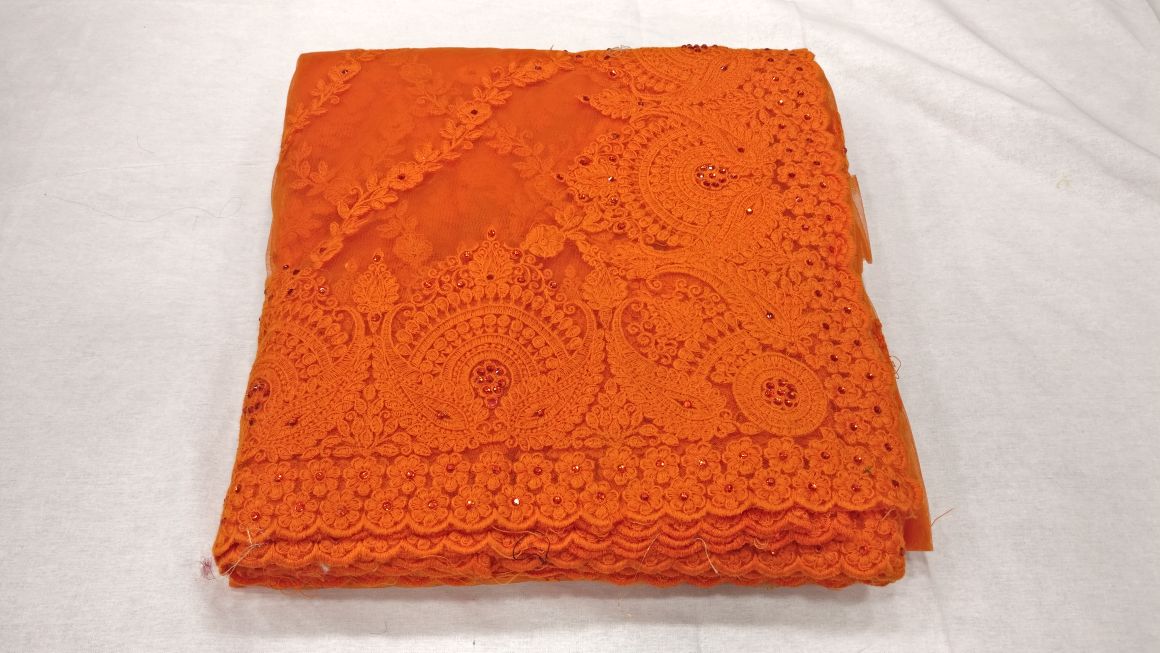 Orange Net Party Wear Saree