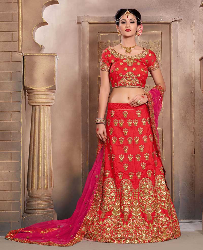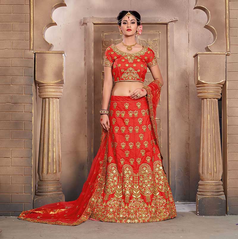 Red Colored Mulberry Silk Lahenga Choli | Order it now via Whatsapp us on +919619659727