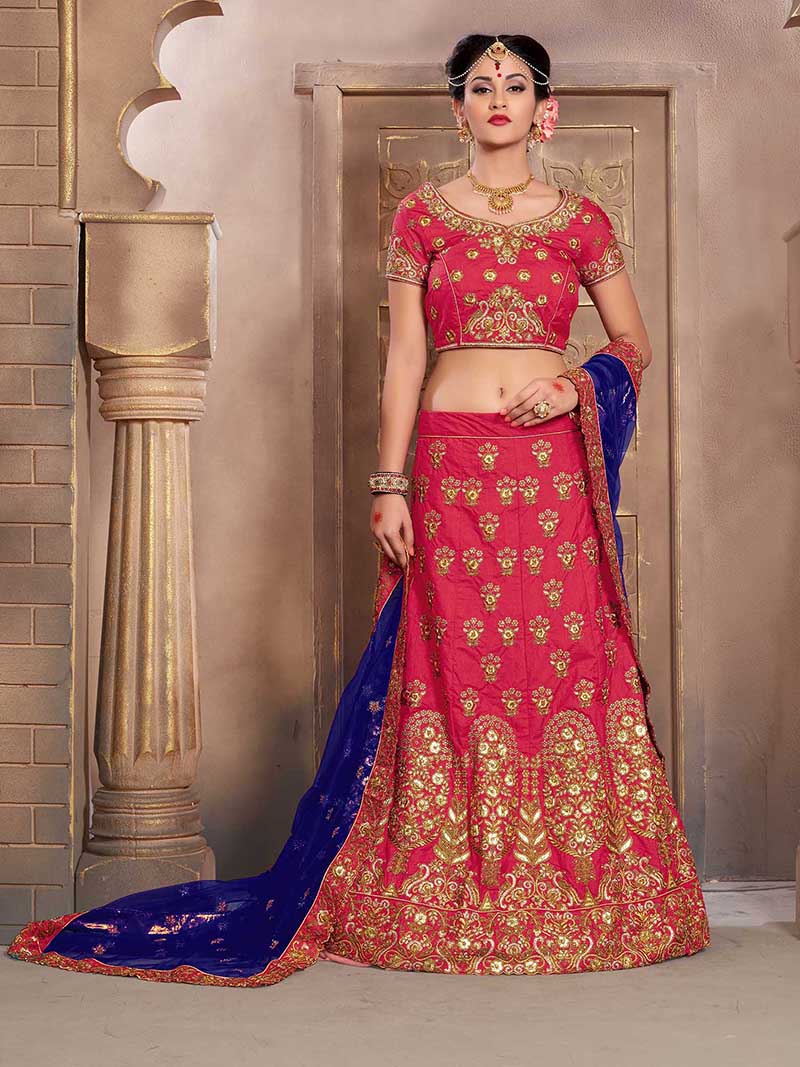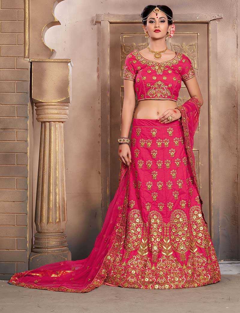 Pink Colored Mulberry Silk Lahenga Choli | Order it now via Whatsapp us on +919619659727