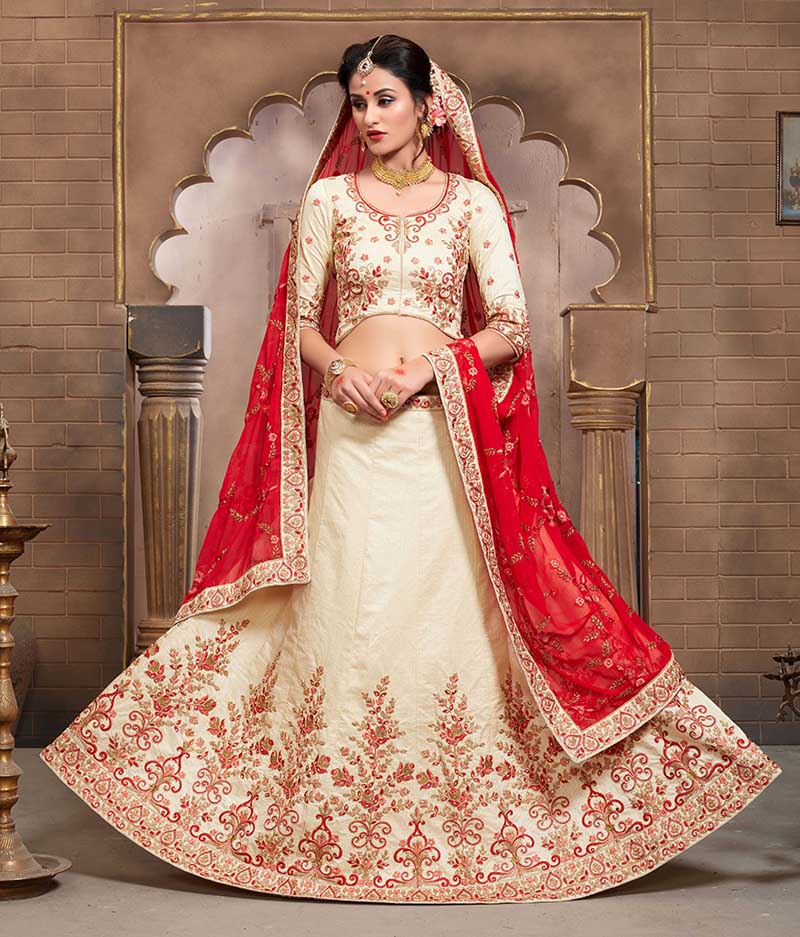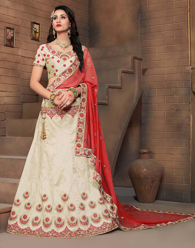 Off White Colored Mulberry Silk Lahenga Choli | Order it now via Whatsapp us on +919619659727