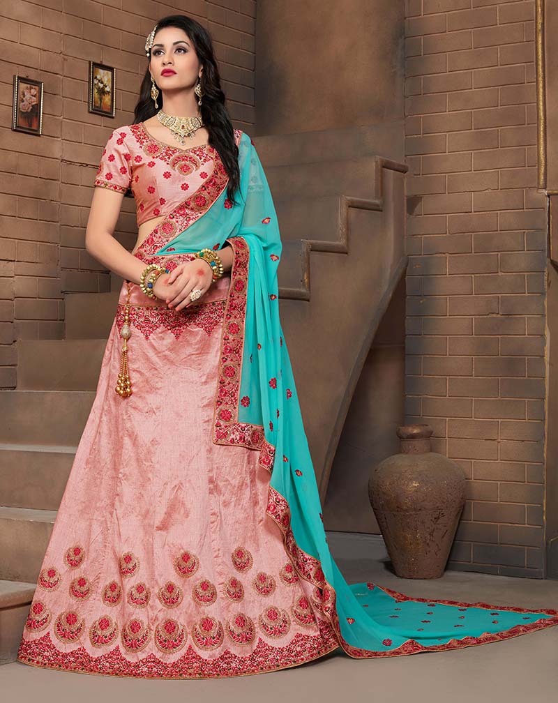 Light Pink Colored Mulberry Silk Lahenga Choli | Order it now via Whatsapp us on +919619659727