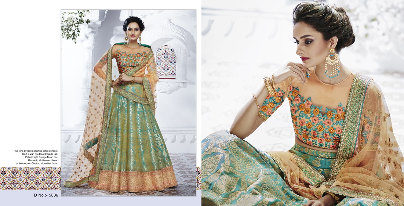Lehenga/Skirt: Two tone zari brocade fabrics with zari embroidery work border