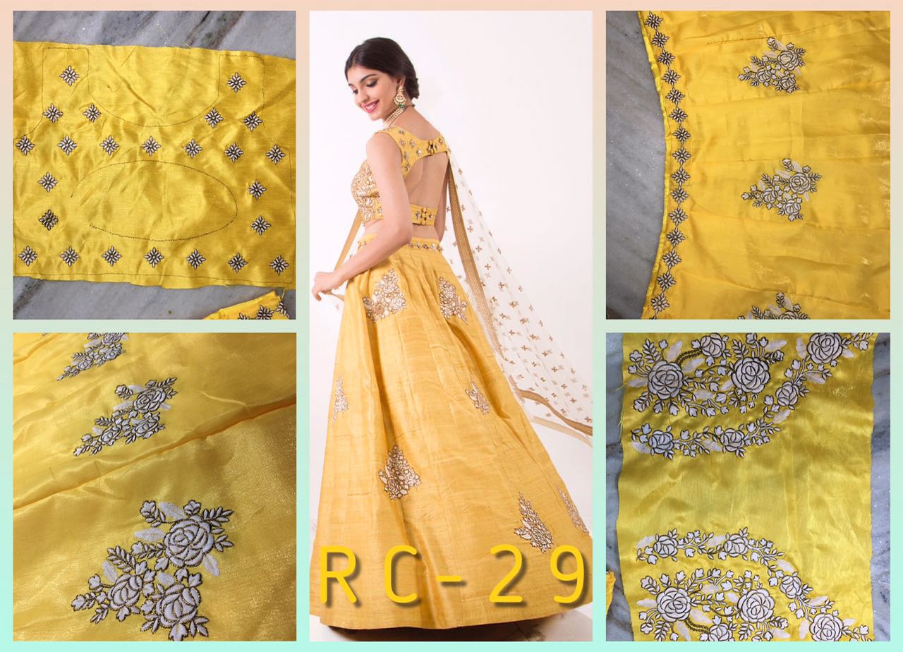 This set features a Yellow Sartin Bangalori silk Embroidery Work lehenga choli set. It comes along with White color and Copper Zari work. Work on dupatta and heavy embroidery work on dupatta. Matching blouse with heavy zari work. You can get this outfit for you. Order Now!