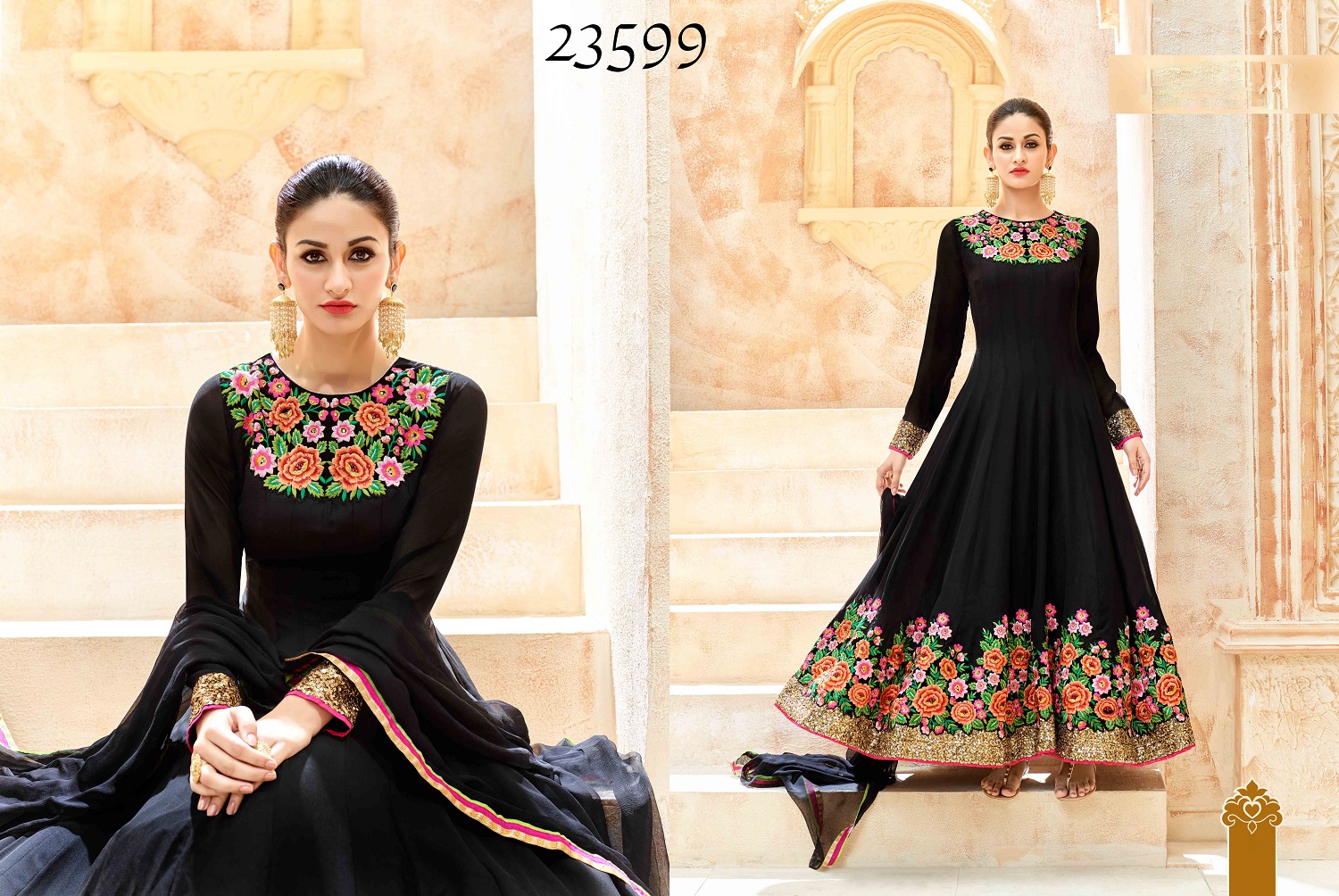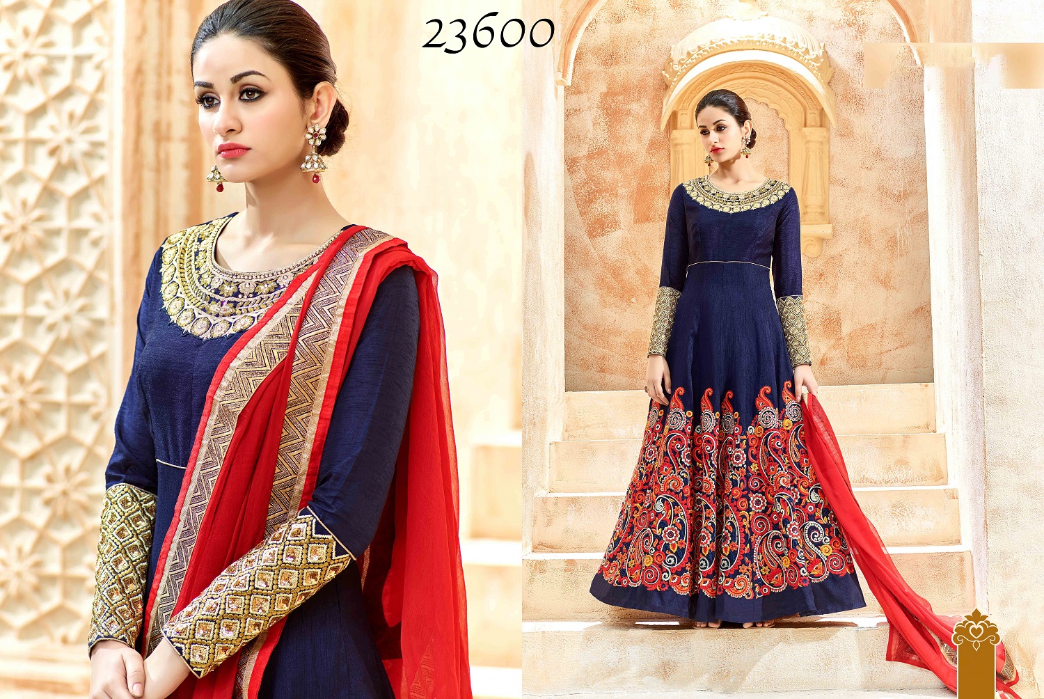 Be Glorious And Flaunt The Queen Style, There Is Nothing As Classy As Wearing A Unique Design. Wear These Gorgeous Suites. Long And Beautiful Gold Dangles Will Compliment These Outfit And Give You The Edge You Need. Be It Any Wedding Ceremony Or A Festival There Is No Better Than These Designer pieces.