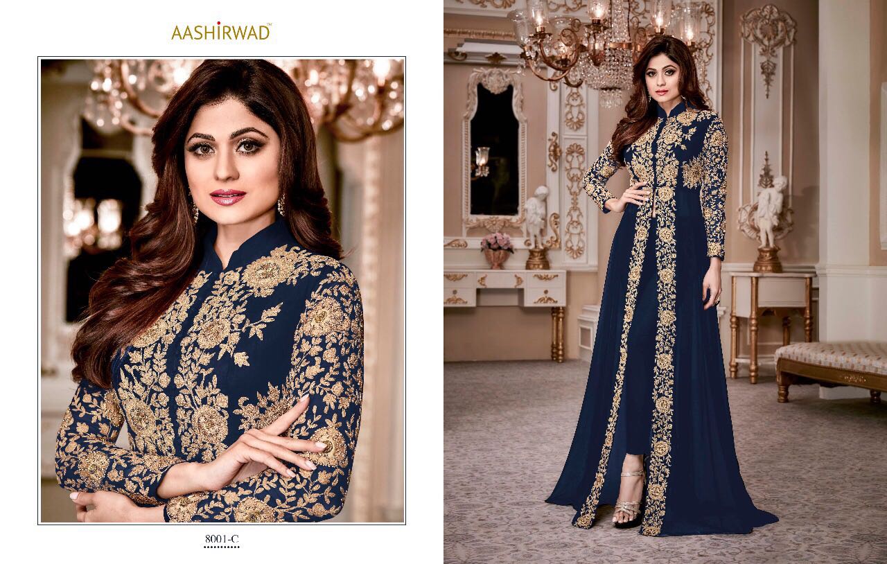 Shamita Gold Front Open Salwar Suit 8001 Colored Collections